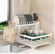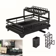 Double-tier extendable dish drainer, suitable for kitchen
