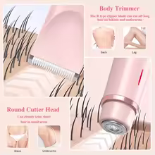 Dual-Head Design: Our pubic hair trimmer for women boasts a 2-in-1 design, featuring both a body shaver head and a facial shaver head in one sleek-unit. No need for blade-replacements – enjoy hassle-free grooming anytime, anywhere.
