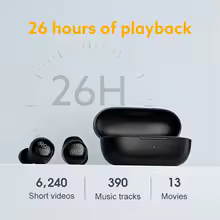 One top-up offers 7.5 hours of playback while the charging case extends it to 26 hours. Keep music playing!